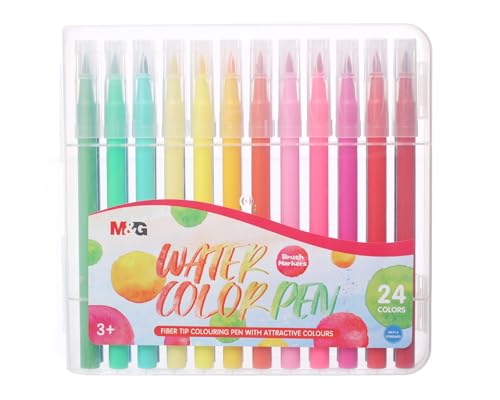 M&G - أقلام فرشاة بطرف مرن من اللباد من ام اند جي، لتعبير فني مليء بالألوان، 24 لون