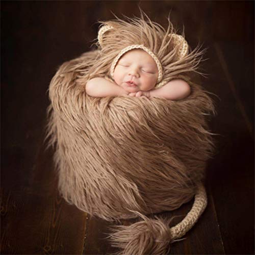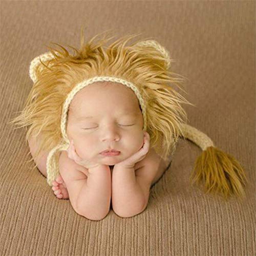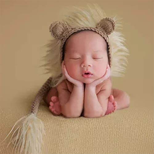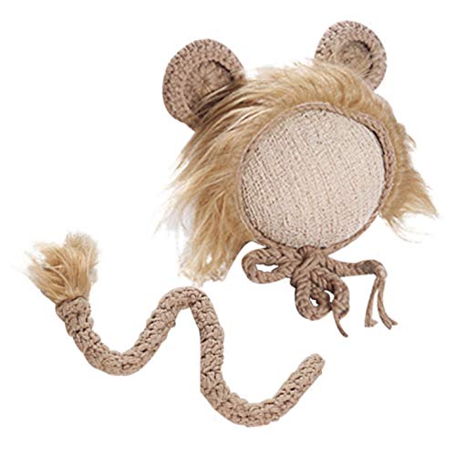 M&G House - طقم زي تنكري للاطفال حديثي الولادة من ام اند جي هاوس مصنوع الكروشيه المحبوك بتصميم حيوان لاعدادات التصوير الفتوغرافي تصميم بقبعة اسد وذيل بيج