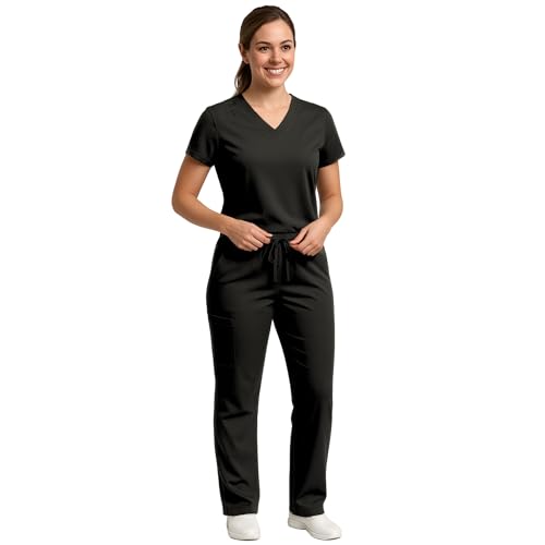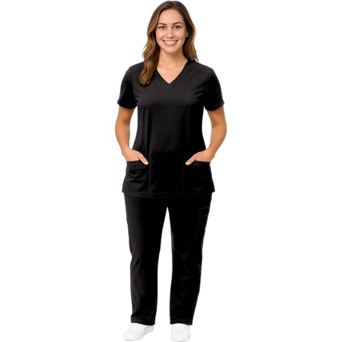 M&M SCRUBS - ام اند ام سكرابز طقم ملابس طبية كارجو للنساء قابل للتمدد في 4 اتجاهات خفيف الوزن بقبة V وسروال كارجو