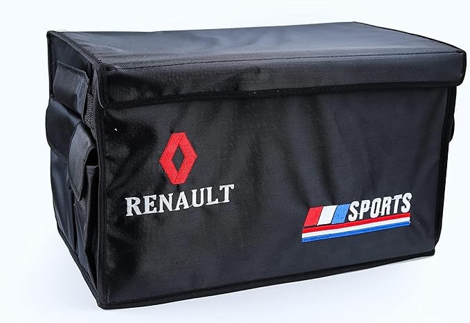 M MAKE OVER A C C E S S O R I Z E Y O U R C A R - منظم صندوق سيارة قابل للطي تخزين مع جيوب صغيرة وفتحات لسيارة رينو - اسود من ميك اوفر
