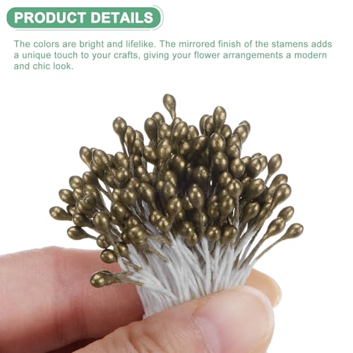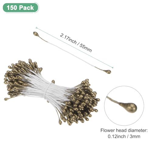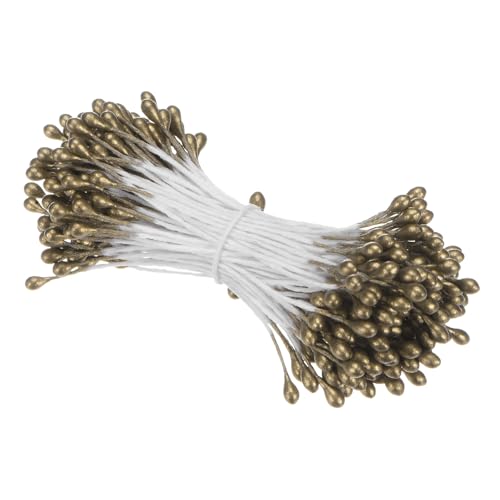 M METERXITY - مجموعة أسدية زهور صناعية برؤوس مزدوجة صغيرة لصنع الزهور وأكاليل الزهور اليدوية وتنسيقات زهور الزفاف من ام ميتركسيتي، 150 قطعة، مقاس 2.4 ملم [لون بني ذهبي]