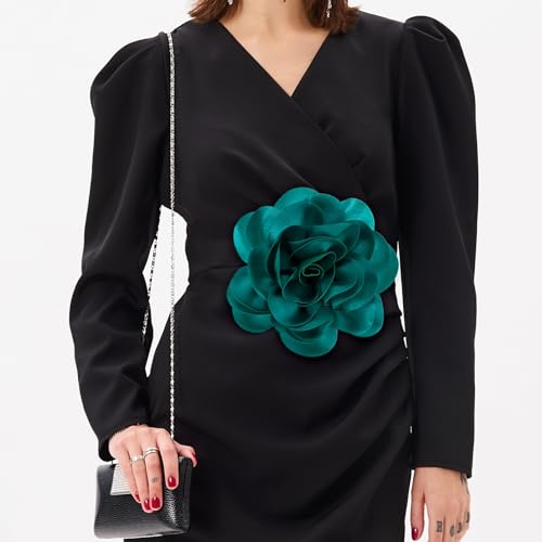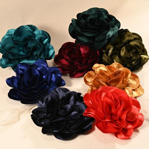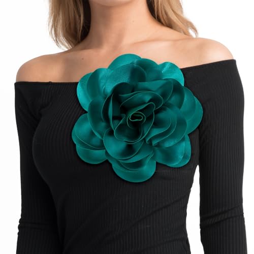 M METERXITY - دبابيس بروش كبيرة جدًا بتصميم زهرة وردية من ام ميتركسيتي، دبابيس طية صدر من قماش الساتان بتصميم كاميليا كبيرة الحجم للنساء لحفلات الزفاف/الرقص/الملابس/الاكسسوارات/الحفلات