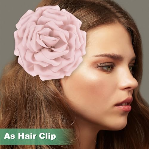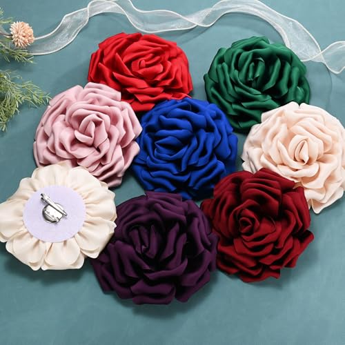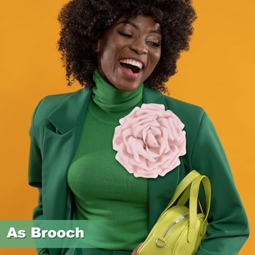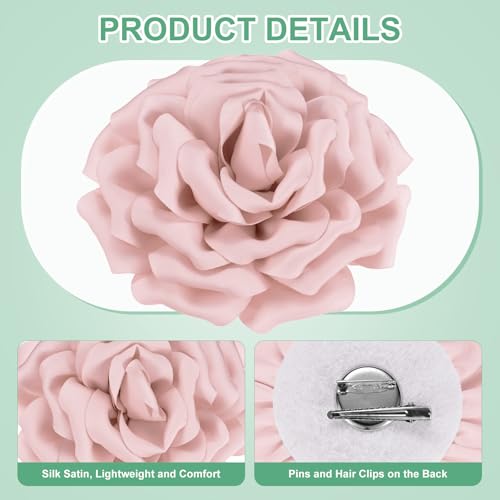 M METERXITY - دبوس بروش كبير على شكل زهرة من ام ميتركسيتي، دبابيس طية صدر السترة من قماش الساتان الأنيق على شكل زهور كاميليا كبيرة ودبابيس لحفلات الزفاف