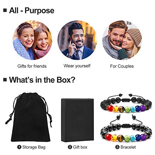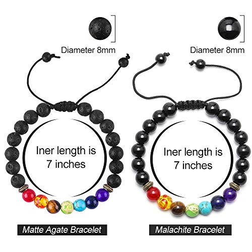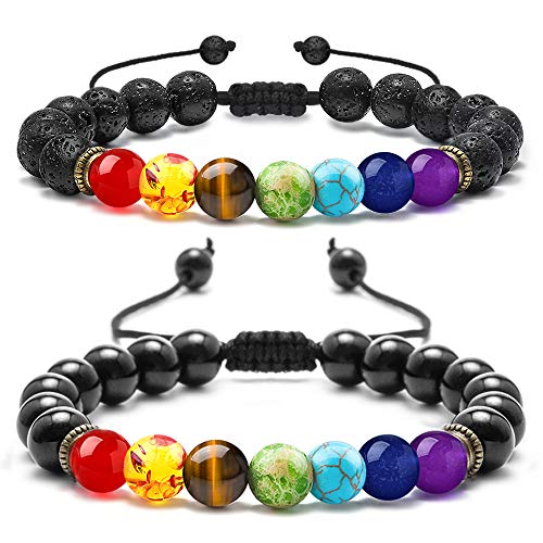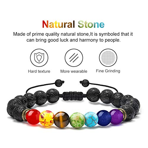 M MOOHAM - سوار شاكرا من احجار بركانية للرجال والنساء، سوار شاكرا من احجار بركانية طبيعية مقاس 8 ملم، سوار خرز مطاطي لتخفيف التوتر لليوجا، وللعلاج بالزيوت العطرية من ام موهام, 9.4 inches, حجر