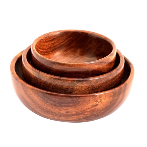 M.R Crafts - طقم بولات متداخلة وقابلة للتكديس مصنوعة يدويًا من خشب الشيشام للسلطة والمكرونة والفواكه من ام ار كرافتس، 3 قطع القطر 15 سم، 12 سم، 10 سم، العمق - 5 سم.