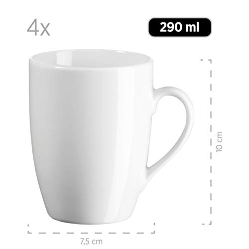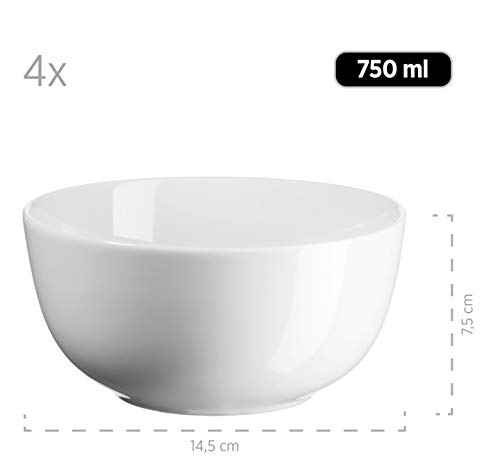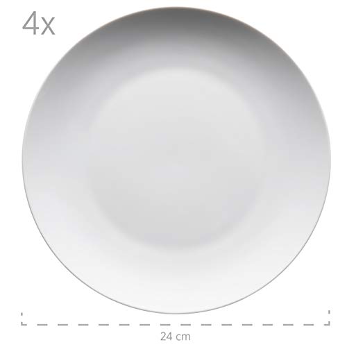 - أدوات مائدة من البورسلين الأبيض من 16 قطعة لـ 4 أشخاص، 4 × أطباق عشاء مسطحة (قطر 24 سم)، 4 × بولات حبوب أو شوربة (قطر 14.5 سم، سعة 750 مل)، 4 × أطباق حلويات (قطر 20.5 سم) و4 × أكواب قهوة (290 مل)
