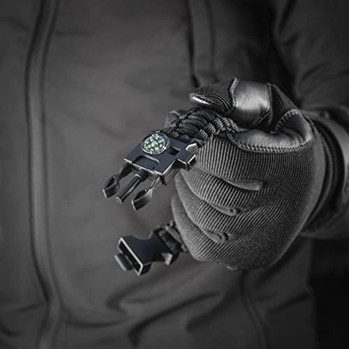 M-Tac - ام-تاك سوار باراكورد للنجاة - حبل بطول 12 قدم (144 انش) - حبل طوارئ تكتيكي مع صافرة بوصلة (مقاس M، اسود)