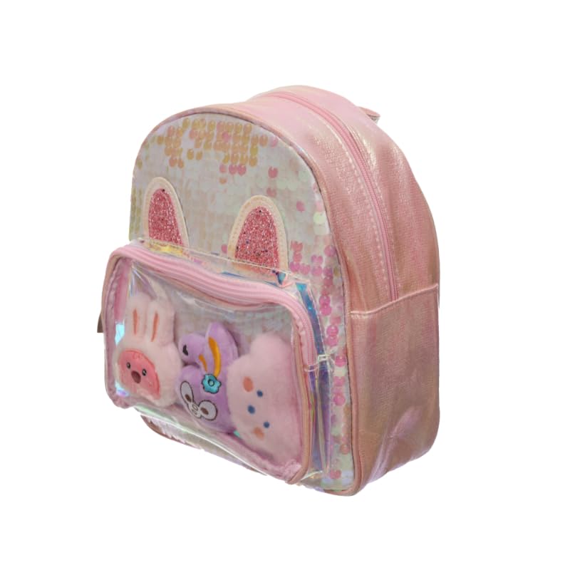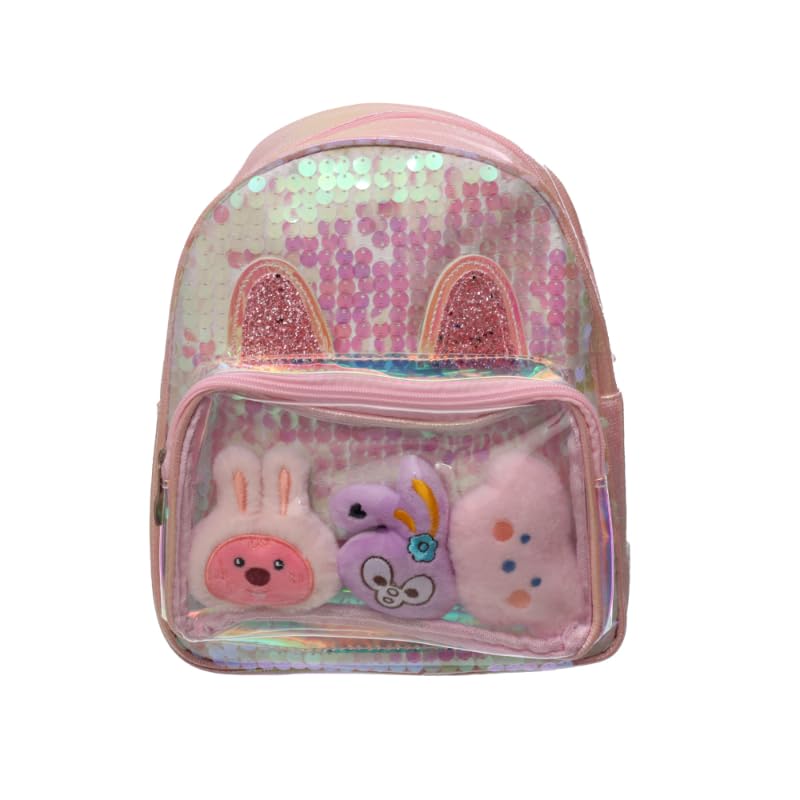 Generic - شنطة ظهر للأطفال M10 من الجلد الصناعي المقسم الجليتر تحتوي على عروسة دب تيدي لطيفة مع حمالات مريحة قابلة للتعديل وتصميم متين خفيف الوزن - متعددة الألوان