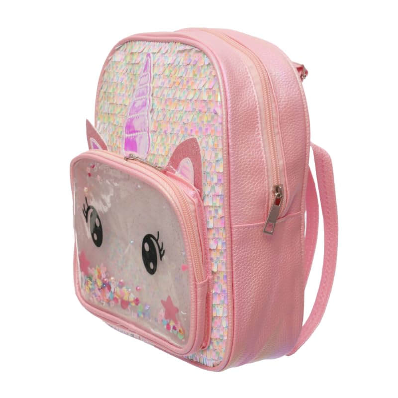 Generic - شنطة ظهر من جلد صناعي بجيوب ومزينة بتصميم لامع متحرك وأحزمة مريحة قابلة للتعديل وتصميم متين خفيف الوزن للأطفال - متعددة الألوان M110