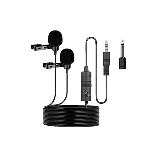Generic - ميكروفون لافالير مزدوج M1DM - ميكروفون بمشبك متعدد الاتجاهات لكاميرا DSLR وايفون واندرويد واللابتوب واليوتيوب والمقابلات (مدخل 3.5 ملم، مزدوج)