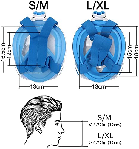 M2068G - قناع وجه كامل للغطس والسباحة والرياضات المائية من ام2068جي، مقاس L/XL، مقاسات للبالغين، لون أسود