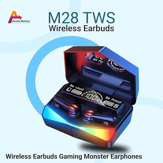 Generic - سماعات أذن M28 TWS لاسلكية، بلوتوث 5.1، شاشة LED، تحكم باللمس، مقاومة للماء، مع ميكروفون للألعاب