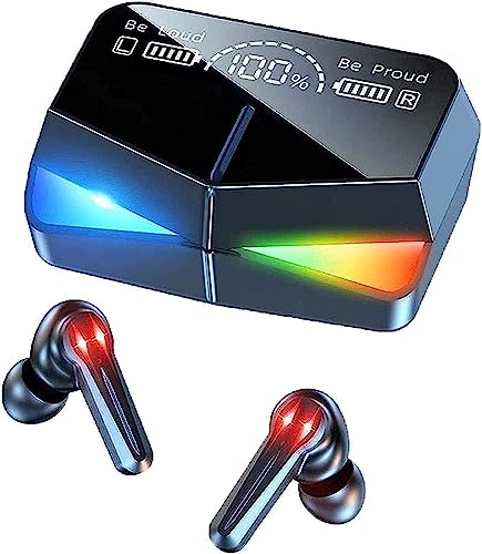 Year - سماعات اذن لاسلكية للالعاب M28 بلوتوث 5.1 تعمل باللمس شاشة عرض عاكسة للميكروفون LED صغيرة صوت ممتاز يضمن اتصال سريع ومستقر مقاومة للماء اسود في الاذن