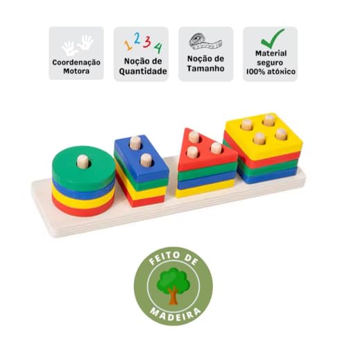 M5 Armarinhos - M5 Armarinhos - Prancha de Seleção Small Jogo Educativo Encaixe Madira Brinquedo de Babe Jogo Pedagógico de Formas Geometricas، 3 سنوات فما فوق، 16 قطعة، متعدد الالوان