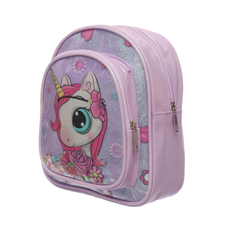 Generic - شنطة ظهر M66 للأطفال من جلد صناعي بتصميم لطيف لامع بواجهة وحيد القرن وأحزمة مريحة قابلة للتعديل وتصميم متين ووزن خفيف- متعددة الألوان