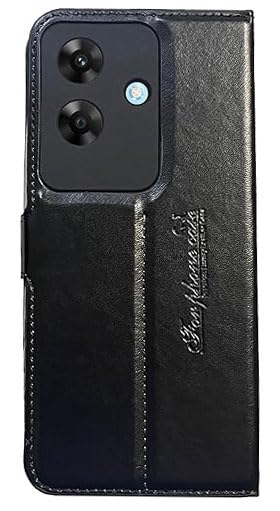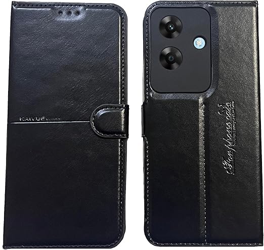 Generic - حافظة كايون وش و ظهر قابلة للطي من الجلد الصناعي لهاتف اوبو ريلمي نوت 60 مع مسند بتغطية كاملة مع حماية للكاميرا من M7molge - (اسود)