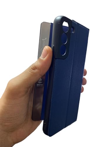 - جراب فليب وش و ظهر فيو جديد من M7molge متوافق مع هاتف سامسونج جلاكسي S22 بلص - لون ازرق