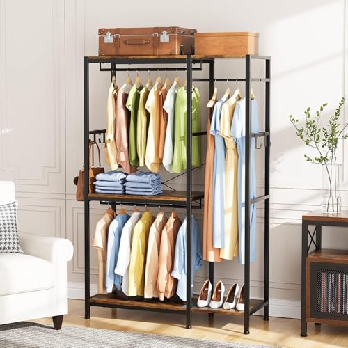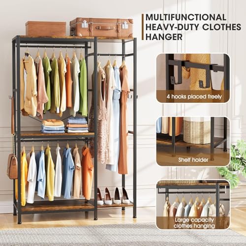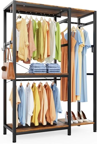 Generic - خزانة ملابس قائمة بذاتها من ام ايه، خزانة ملابس متينة من الحديد والخشب، خزانة ملابس مع قضيب رفوف لتعليق الملابس مع أرفف