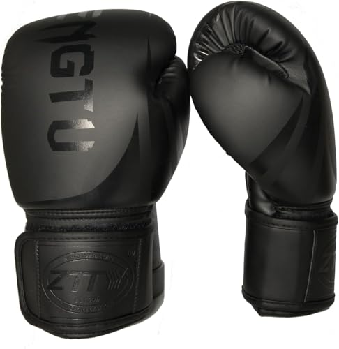 Maanys - قفازات ملاكمة للرجال والنساء للتدريب الاحترافي والملاكمة التايلاندية، جوانتي للكيك بوكسينج والفنون العسكرية متين من الجلد الصناعي مزود براحة يد جيدة التهوية من مانيس، لون أسود، 283 جم