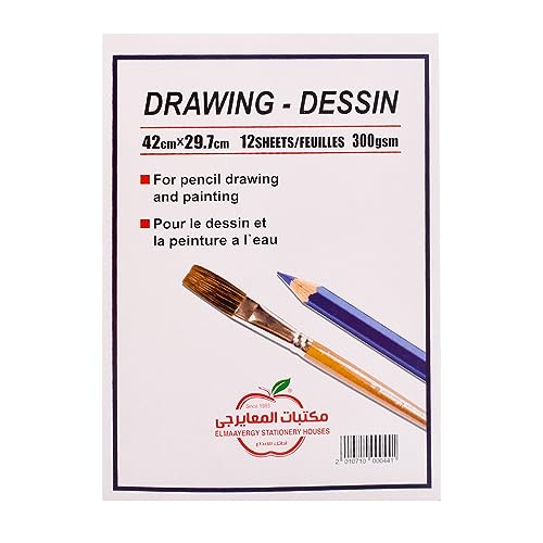 Maayergy - سكيتش رسم A3 12 ورقة مصنوع من مواد متينة من المعايرجي، مناسب للمدرسة والمنزل، 300 جرام