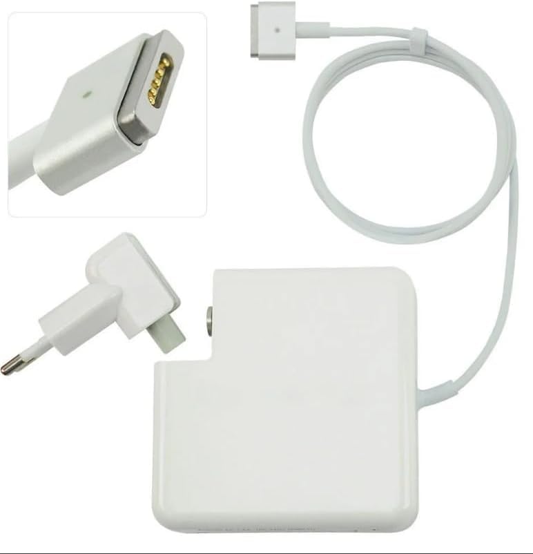 - شاحن ماك بوك برو بقدرة 60 وات: الجهد الكهربائي الداخل: تيار متردد من 100 إلى 240 فولت، 1.5 أمبير، من 50 إلى 60 هرتز؛ الطاقة المخرجة: تيار مستمر 16.5 فولت - 3.65 أمبير (60 وات طرف على شكل حرف T)، يرجى التحقق بوضوح قبل الشراء. هذا الشاحن هو شاحن من الجيل الثاني، وليس الجيل الأول.