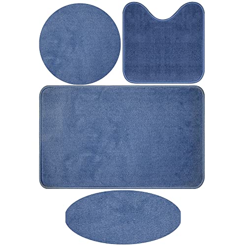 MAC CARPET S.A.E - مجموعة سجادات اوستن للحمام، مكونة من 4 قطع مع خصم بنسبة 50%، أزرق، مطاط