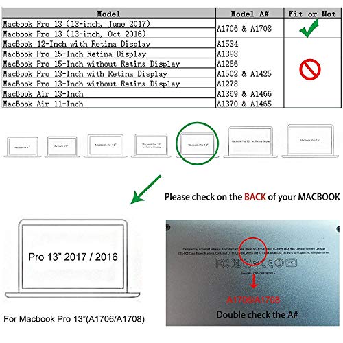 Generic - غطاء حماية لماك بوك برو 13 - A 1706 تاتش بار / A 1708 بدون تاتش بار - أسود، لأجهزة اللاب توب