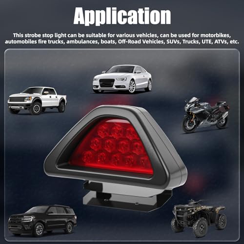 - خيار مناسب لسيارتك: هذا المنتج هو نوع من مصابيح الفرامل لجميع الأغراض، حيث يناسب معظم السيارات ويزيد من تأثير التحذير على مصباح الفرامل عند الفرملة. تناسب أي سيارات أو شاحنات أو سيارات الدفع الرباعي أو المقطورات أو المركبات الترفيهية أو الموتوسيكلات.