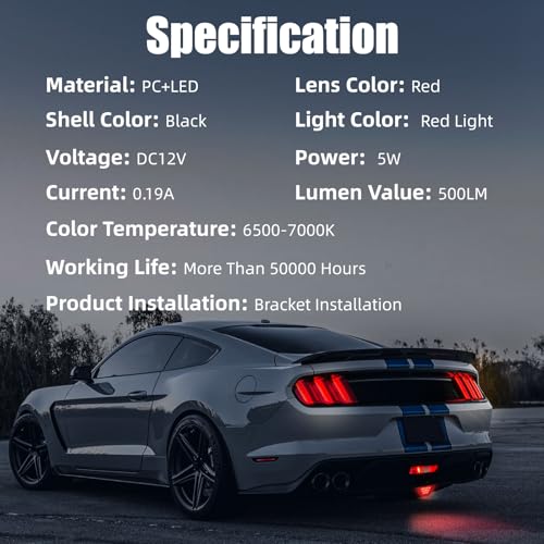 MACHSWON - إشارة فرامل خلفية للسيارة 12 فولت، مصباح LED لضوء الفرامل الثالث، مصباح خلفي وامض للضباب من ماشسون، ضوء أحمر بغطاء أحمر