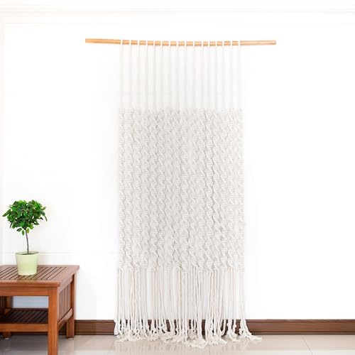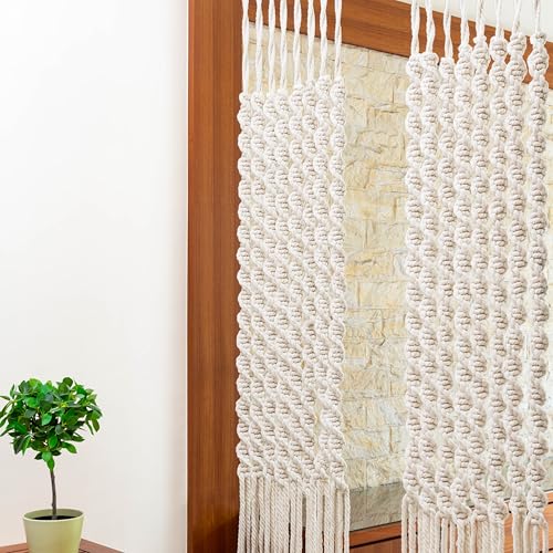 Macrakido - مكرمية يدوية الصنع للتعليق على الحائط، بديل خرز بوهيمي، ستارة باب فاخرة مصنوعة من 16 قطعة سميكة (8 ملم)، ستارة خرز بوهو كريمي للمدخل (200 سم)، من ماكراكيدو