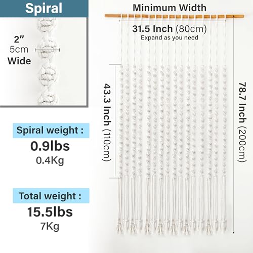- مقاس مميز مثالي: يبلغ مقاس كل جديلة 200 سم مع 110 سم من التصميم الحلزوني المعقد. العرض الجماعي مثالي للمداخل القياسية (76 إلى 91 سم) وكذلك كستارة حائط.