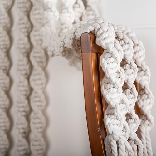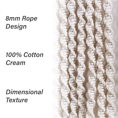 - جودة حرفية فائقة: مصنوعة من حبل قطن سميك بسمك 8 ملم، وزن كل خيط لولبي 0.6 كجم، مع الوزن الإجمالي للقطعة 9.6 كجم - أكثر كثافة بكثير من فن المكرمية التقليدي.