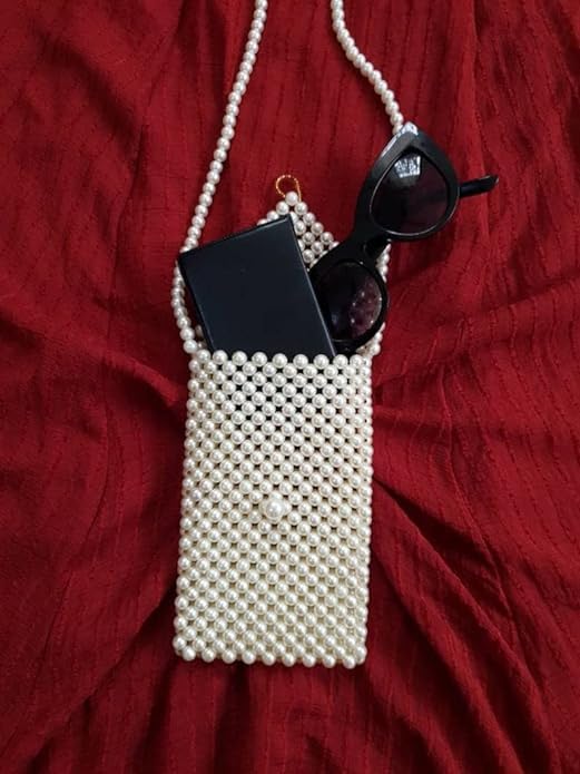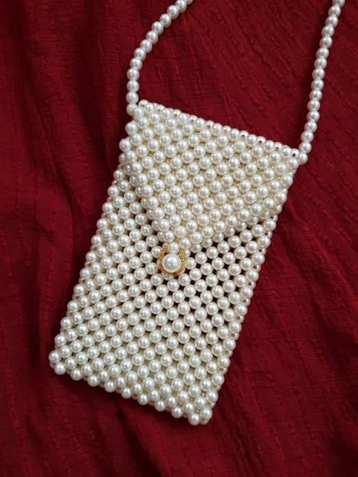 MACRAMASTER HANDICRAFT - شنطة مطرزة باللؤلؤ الكريستالي للنساء من ماكراماستر شنط رسمية فاخرة للفتيات يد صغيرة عصرية احدث هدايا كريمي