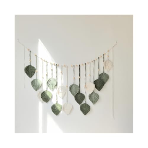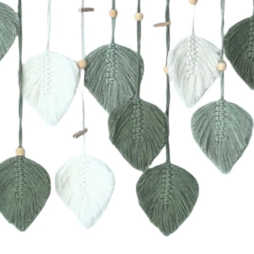 Madiffcult - شريط مكرمية بنمط ورقة شجر للتعليق على الحائط، مصنوع يدويا من نسيج بنمط بوهو، مع 10 مشابك خشبية، لديكور المنزل وعرض الصور وغرفة النوم وغرفة المعيشة وغرفة الدراسة، لون أخضر، مقاس 1.19 م × 66 سم