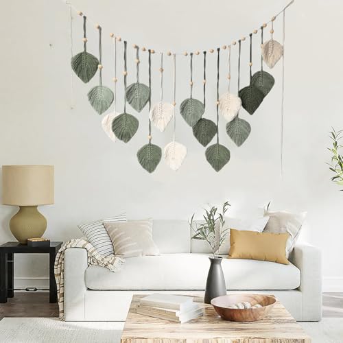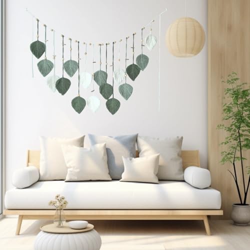 - 1. تصميم بوهيمي: مفروشات منسوج يدويًا على شكل أوراق الشجر: تضفي هذه المفروشات المنسوجة يدويًا لمسة بوهيمية نابضة بالحياة على مساحتك بمفهومها الطبيعي المتمثل في تصميم الأوراق ولون الماكرون الأخضر، وهي مثالية لإضافة لمسة من السحر الثقافي إلى جدرانك.