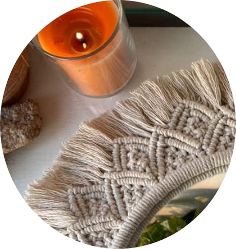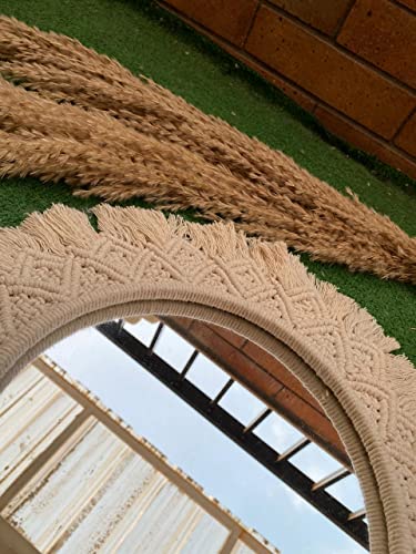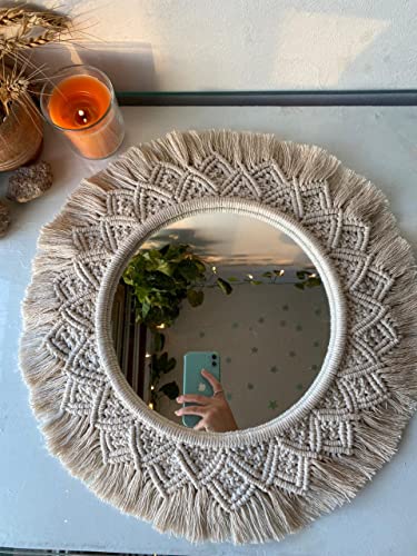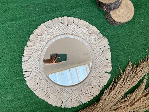 Generic - مرآة حائط بمكرمية للتعليق على الحائط، هدية لمرآة عيد الأم، مرآة زينة بوهو بشراشيب دائرية للتعليق في الشقة وغرفة المعيشة وغرفة النوم، ديكور حائط مصنوع يدويا