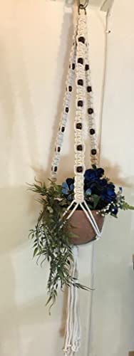 Generic - حامل نباتات مكرمية مع خرز بني - A37، قطن