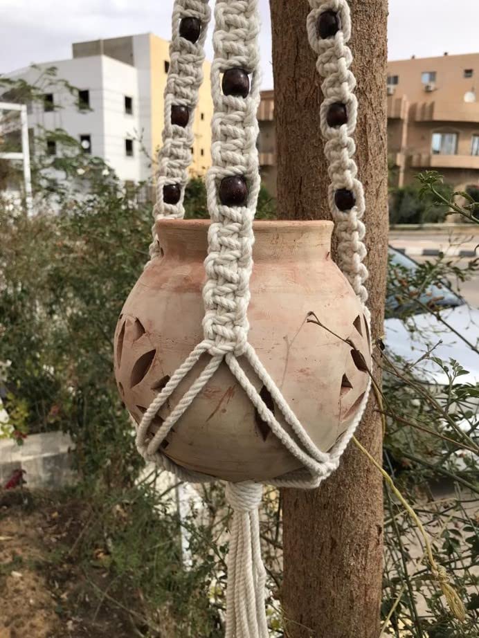 - مكرمية لنباتات الزينة مصنوعة يدويا من خيوط القطن