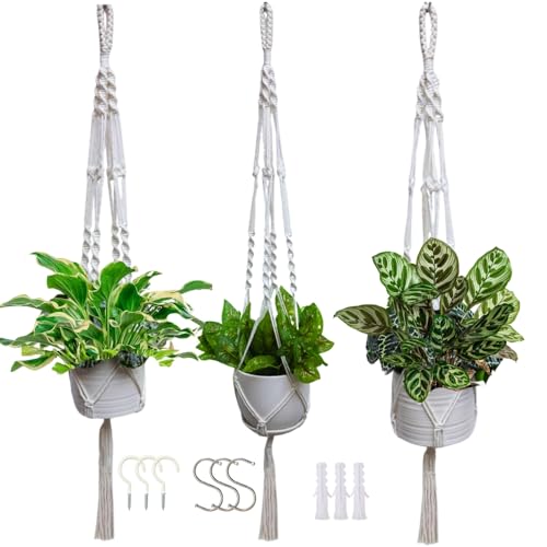 feedee - شماعات نباتات مكرمية للنباتات الداخلية، حامل نباتات معلق، شماعات نباتات يدوية الصنع معلقة مع خرز بدون شرابات، ديكور منزلي، هدايا لمحبي النباتات (عاجي، عبوة من 3 قطع)