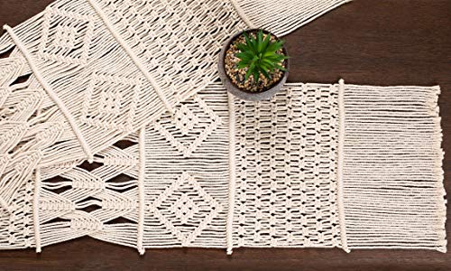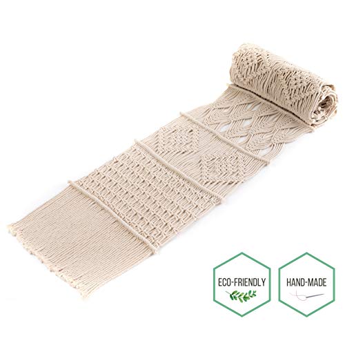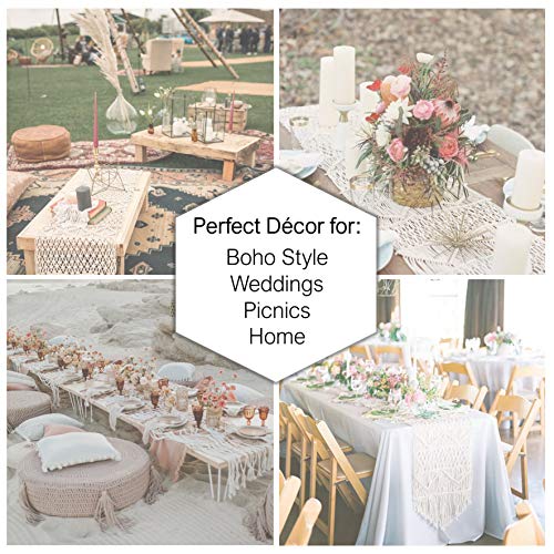 You & Yours - مفرش طاولة مكرمية، مفرش طاولة بوهيمي 2.7 م × 33 سم، مثالي للديكور البوهيمي، ديكور طاولة الزفاف، مفارش طاولة منسوجة يدويا بلون اوف وايت لغرفة الطعام او طاولة القهوة او ديكورات المنزل