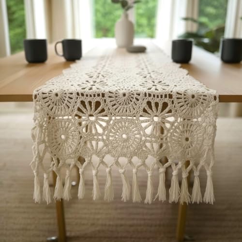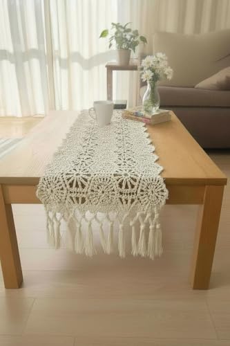Generic - مفرش طاولة مكرمية لطاولة القهوة، مفرش طاولة قطني منسوج يدويا بنمط بوهيمي، مفرش ديكور للطاولة لغرفة المعيشة، 135 × 40 سم