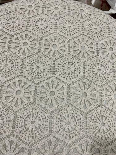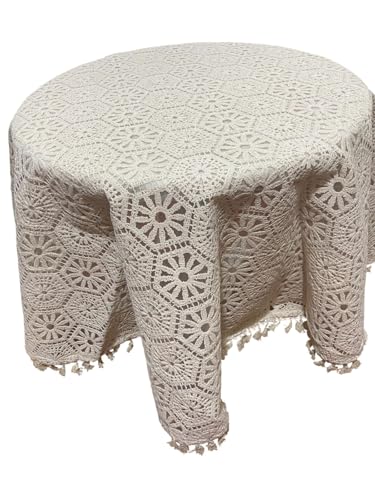 Generic - مفرش طاولة مكرميه مدور بتصميم زهور، لون بيج فاتح، قماش دانتيل كروشيه مع شراشيب _ مفرش متر ونص في متر ونص _ تصميم مميز يضفي جمال وديكور عالي مناسب للهدايا وللتميز