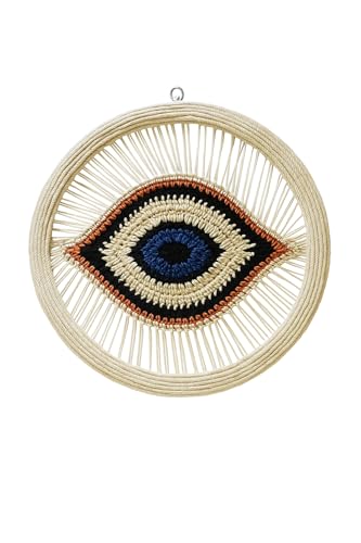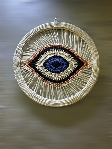 Generic - لوحة جدارية ماكرامي بتصميم العين، حرفة يدوية منسوجة، أبيض وأزرق وأسود، ديكور منزلي