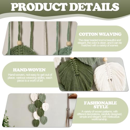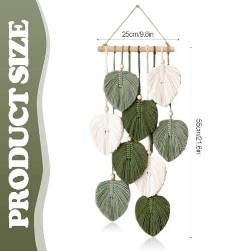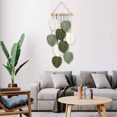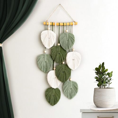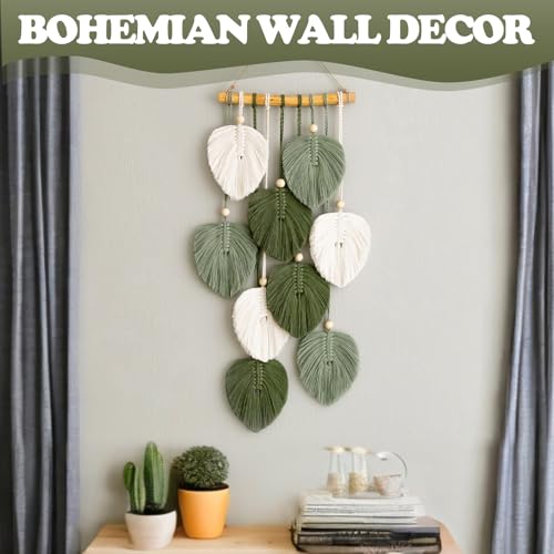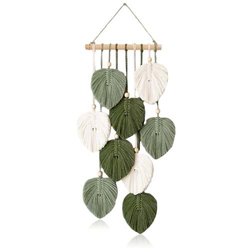 VAIGU:OA - بساط مكرمية مزخرف بوهو للتعليق على الحائط - مصنوع يدويا مع خرز خشبي واوراق خضراء لتزيين الحائط في الهواء الطلق وغرفة المعيشة وغرفة النوم وغرفة الاطفال والهدايا - 25