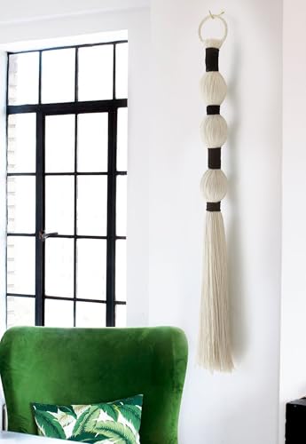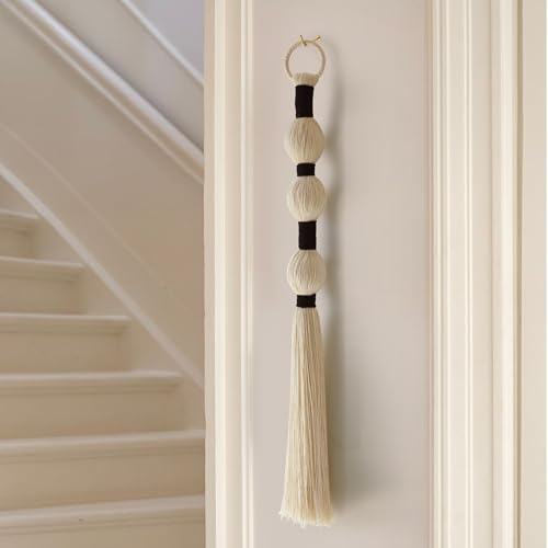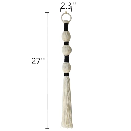 IOWER - مكرمية معلقة على الحائط بنمط بوهو، ديكور حائط بتصميم كرات صغيرة من نسيج قطن بشراشيب للتعليق على الحائط لغرفة المعيشة وغرفة النوم من ايباور، 68.5 سم طول × 6 سم عرض.