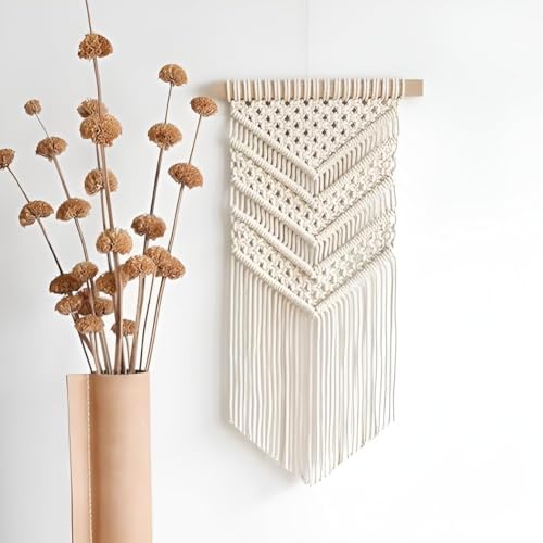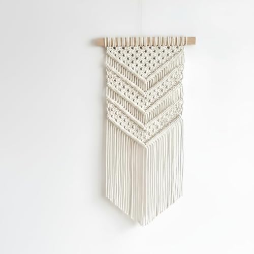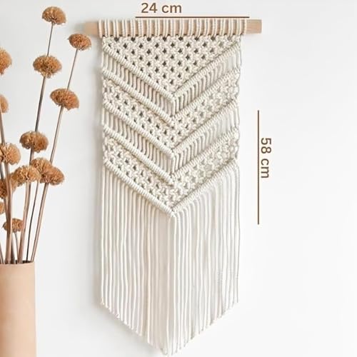 Generic - مكرمية للتعليق على الحائط، كريمي، ديكور بوهو منسوج يدويًا، نمط شيفرون، 24 × 58 سم
