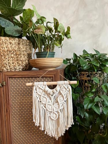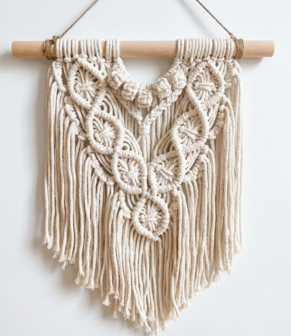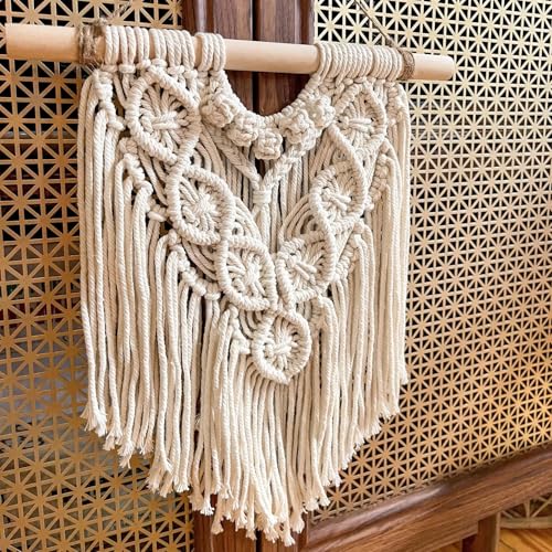 Generic - مكرمية للتعليق على الحائط، اوف وايت، قطن، 12 × 14.1 انش، ديكور بوهو، منسوجة يدويا مع وتد خشبي