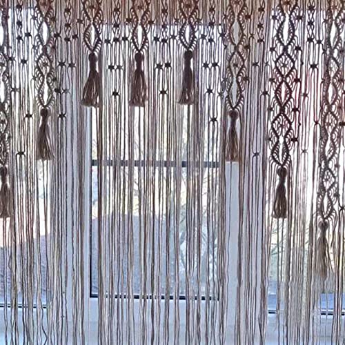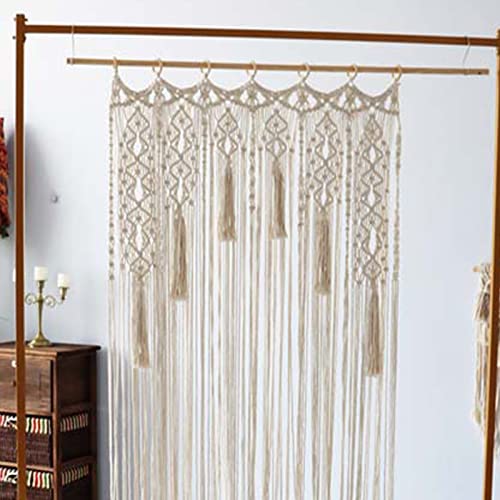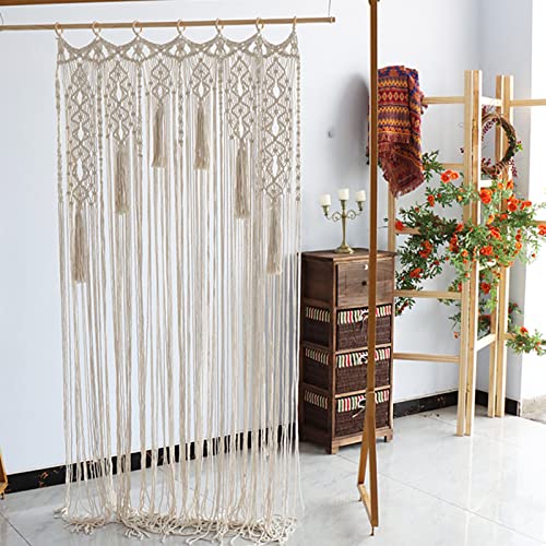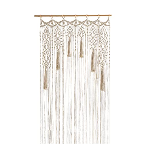 Jauhmui - ستارة مكرمية للتعليق على الحائط باب منسوجة يدويا بنمط بوهيمي ديكور حائط لتقسيم الغرفة ستائر النافذة الباب خلفية الزفاف الديكور الداخلي بيج تصميم 2 قماش مُخطط