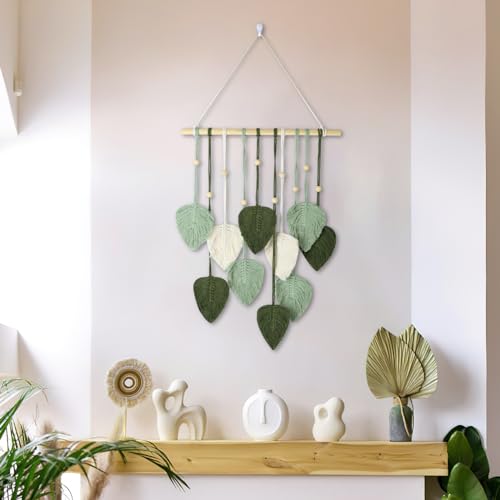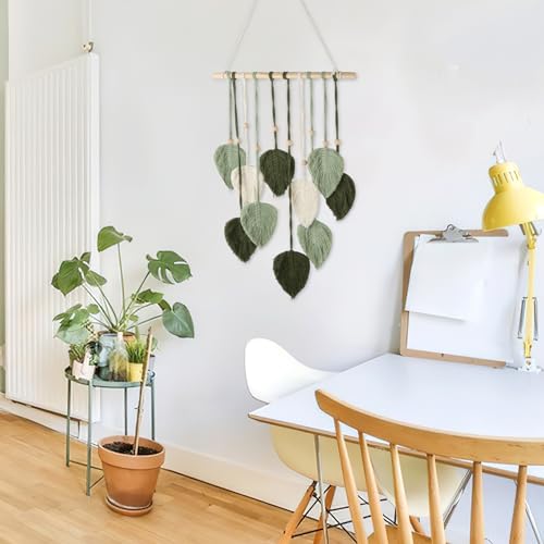 - تصميم فريد: التعليق على الحائط المنسوج على شكل أوراق، مع أوراق متساقطة وخرز دائري، تصميم فريد، يمكن مطابقته مع جميع أنواع الديكورات، زخرفة مكرمية لتزيين غرفة نومك أو غرفة المعيشة، امنح غرفتك شعورًا راقيًا وأنيقًا ورائعًا.
