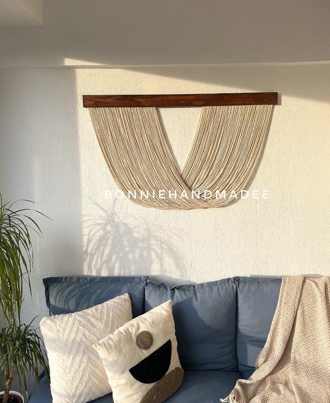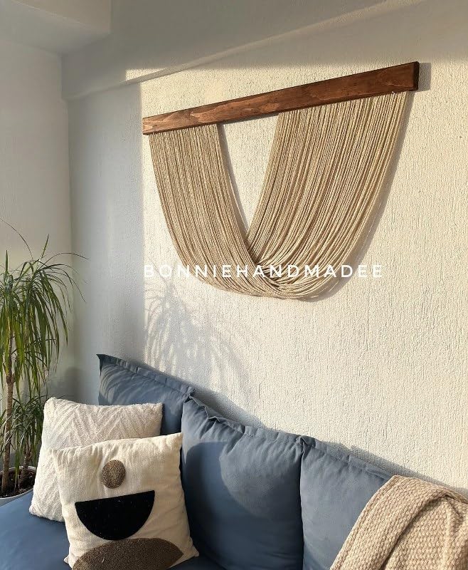 - نسيج مكرمية بوهيمي منسوج يدويًا هو ديكور حائط بسيط على الطراز الاسكندنافي، يضيف لمسة من الفن اليدوي إلى غرفة معيشتك. شريط مكرمية للتعليق على الحائط سهل التركيب ويحتوي على حبل حتى تتمكن من تعليقه في أي وضع. إذا لم يكن هناك خطاف، فقد تحتاج إلى لصق الخطافات.